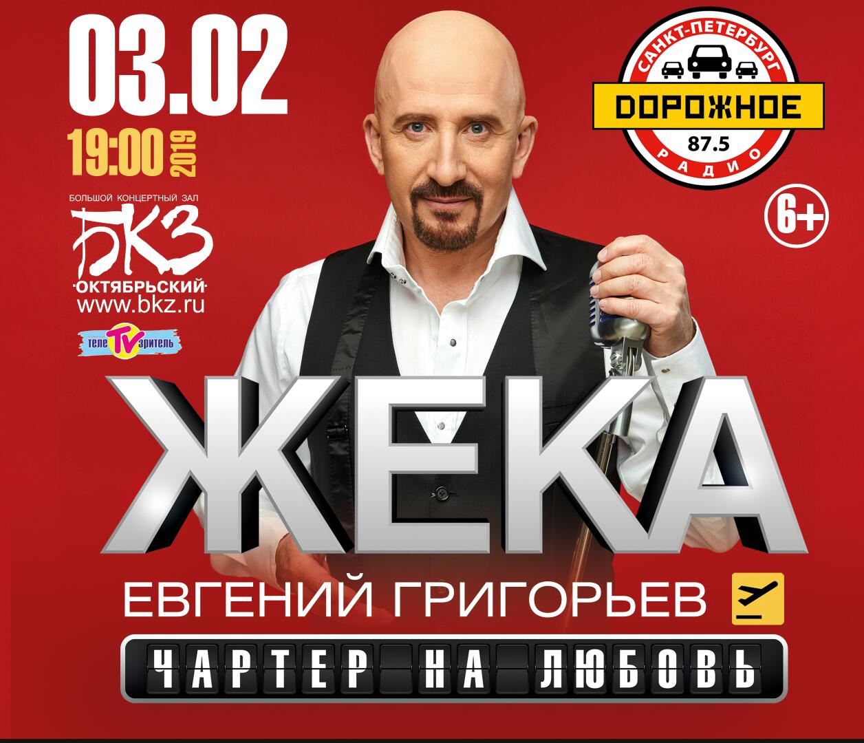 3 февраля 2019 г. в 19:00 ЖЕКА (Евгений Григорьев) "Чартер на любовь" в БКЗ Октябрьский